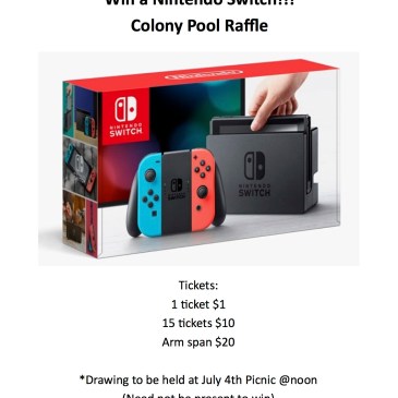 • We need volunteers for the Colony Pool Board! The next Board meeting is Tuesday, August 27 at 6:00 pm and we will be electing a President, Vice President, Treasurer, and Secretary, as well as at-large members. We also need to fill the positions of Chair of Membership and Chair of Operations. Ask a board member if you have questions — you can come to the meeting without committing to a term on the board!
